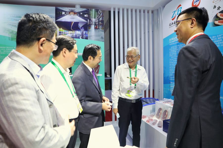 集團下屬浙江土畜、塔牌公司分別作為重點進口平臺、浙江特色老字號品牌企業(yè)入駐浙江主題館,肉類、奶制品、黃酒等特色產(chǎn)品精彩亮相,充分展現(xiàn)了浙江經(jīng)貿平臺和品質浙貨的高品質服務與形象。海南省副省長王斌等領導視察參觀展位,集團董事長樓晶、副總經(jīng)理黃道領等領導熱情接待。