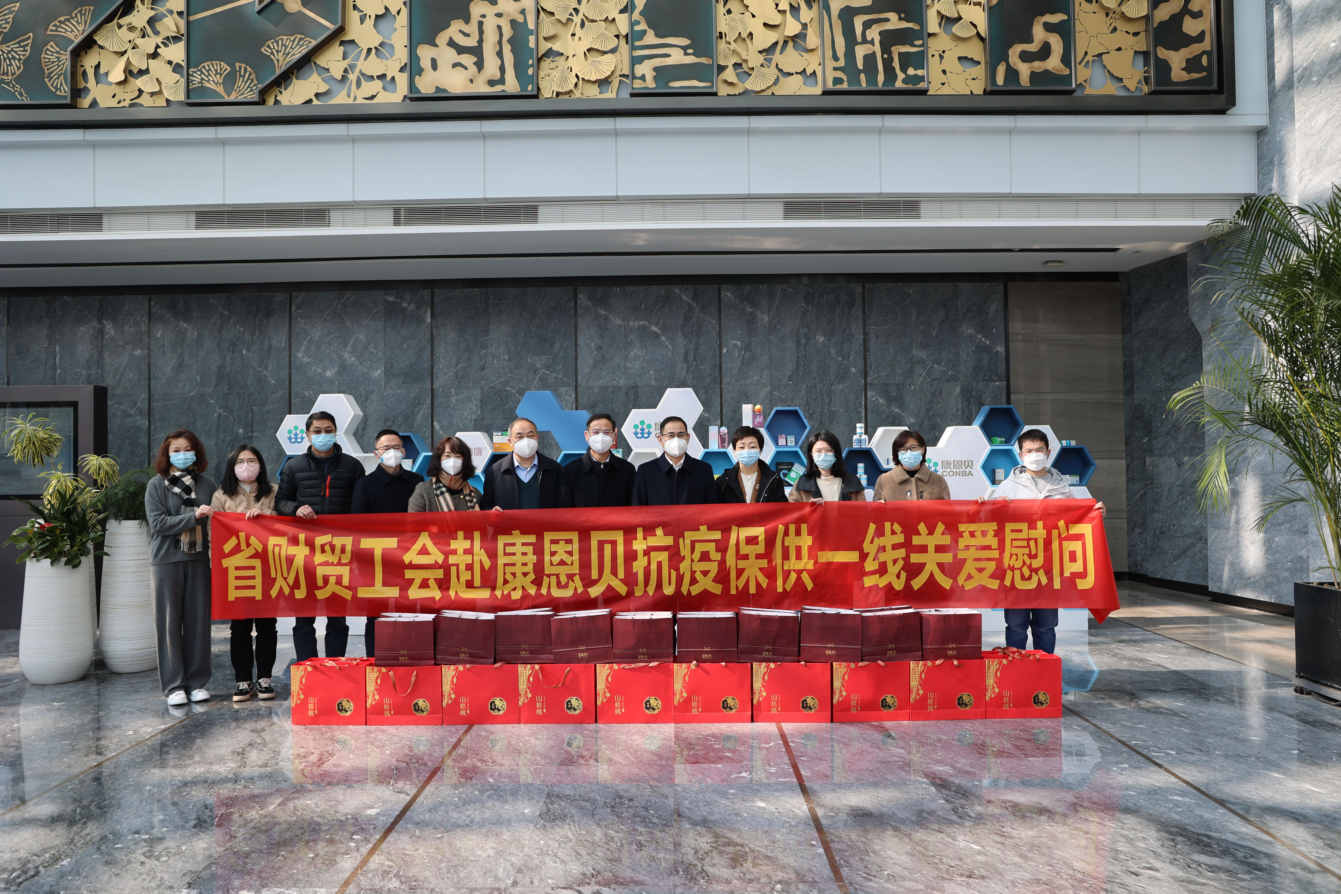 疫情當前,暖心慰問。1月6日上午,浙江省財貿工會主席許以平一行到省國貿集團下屬英特集團、康恩貝股份慰問堅守一線崗位的職工,并實地調研防疫產品生產保供工作。省國貿集團黨委副書記、董事鄭偉,工會辦公室人員陪同,英特集團黨委書記、董事長應徐頡,康恩貝股份黨委書記、副董事長應春曉及相關部門負責人隨行。